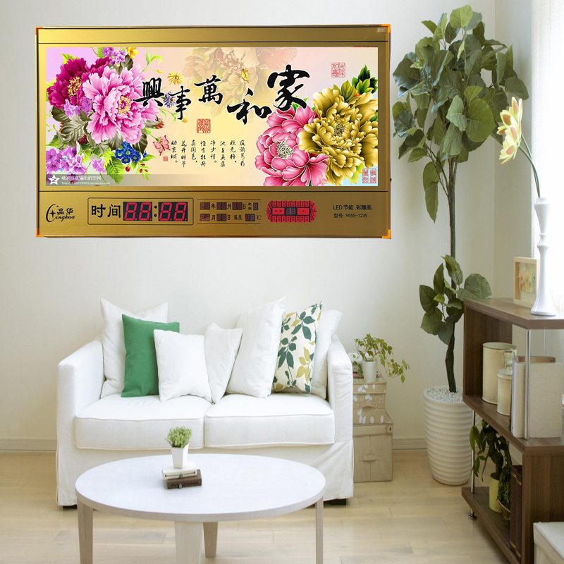 新房客廳家居日歷掛鐘2019新款電子萬年歷數(shù)碼壁掛家用創(chuàng)意鐘表LED客廳日歷掛鐘