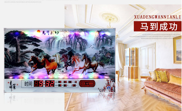 新房客廳裝飾日歷掛鐘,家和風(fēng)景萬年歷,超薄七彩燈光更漂亮