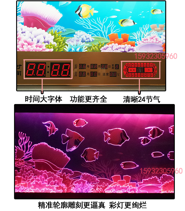 新房客廳裝飾日歷掛鐘,家和風景萬年歷,超薄七彩燈光更漂亮